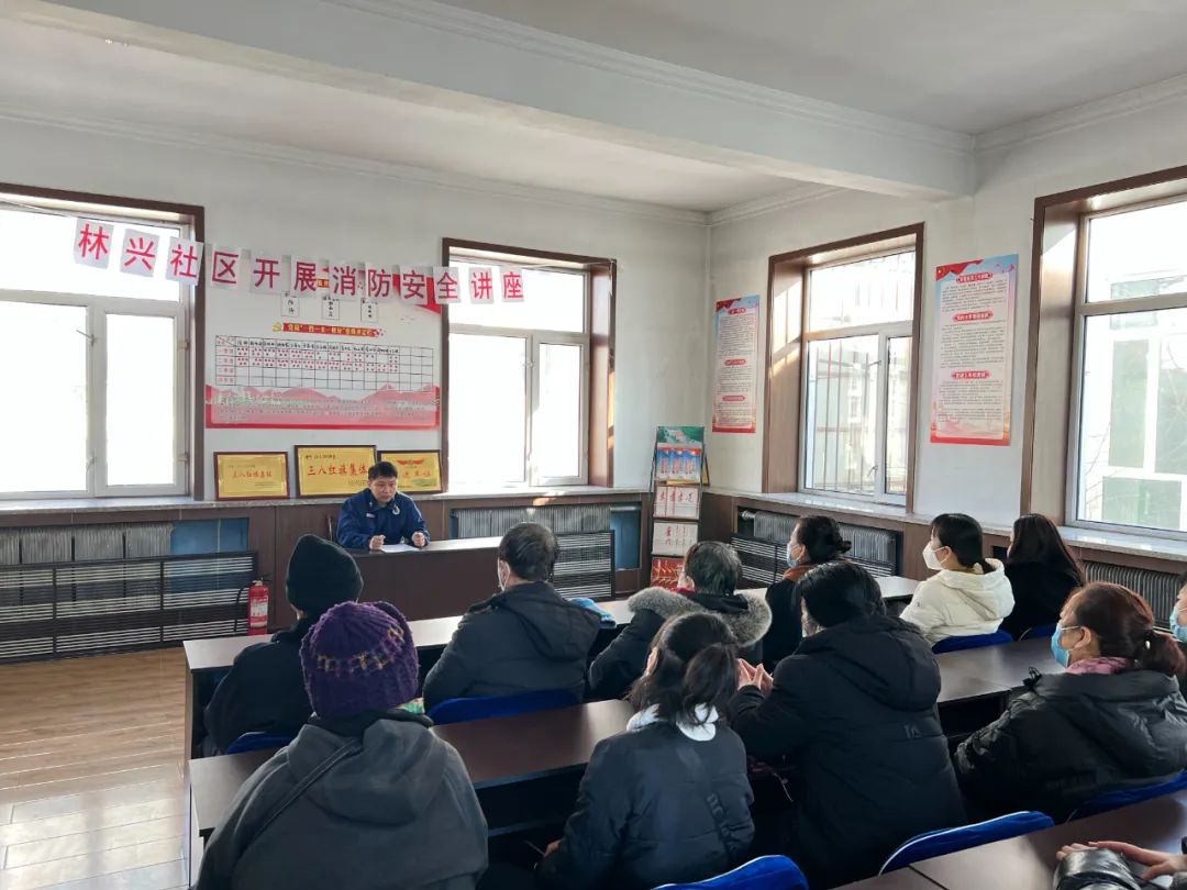 “请大家不要慌乱,捂住口鼻跟随我们向安全地区撤离,不要掉队。”在柴河林业医院,一场紧张的消防疏散演练正在进行中。演练在最短时间内完成了正确报警、疏散逃生、接警出动、水带铺设、水带连接、防火门关闭、消防水泵启动等步骤,进一步提高了职工的消防安全自救能力和安全防范意识以及应对突发消防安全事故的处置能力。“我们需要左手握住喷灌,右手提着压把,在距离火焰两米的地方,右手用力压下压把,然后用我们的左手拿住喷管对准燃烧区左右摇摆……”在林兴社区,受邀前来授课的消防战士金宝昌正在为社区居民讲解消防器材的正确使用方式。林兴社区通过开展以“消防安全,人人预防”为主题的消防讲座,详细讲解了防火减灾的原理和方法,并对常用消防器材的具体使用进行介绍和演示,让社区居民掌握了扑救初期火灾和自救逃生的知识和技能。